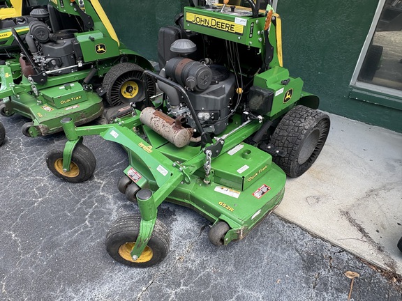 The 2021 John Deere 652R is a commercial-grade stand-on mower designed for professional landscapers and property owners seeking efficiency and durability. It is equipped with a 23.5-horsepower Kawasaki FX730V engine, providing robust power for demanding mowing tasks. The mower features a 52-inch Mulch On Demandâ„¢ deck with an electric operator-controlled discharge chute, allowing for versatile mowing options. Used, AS IS