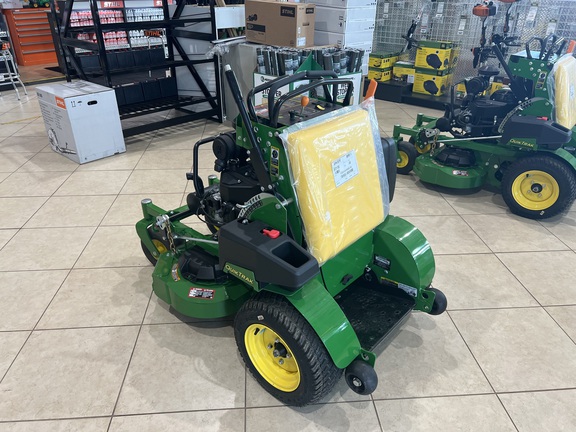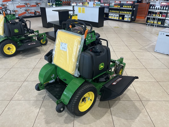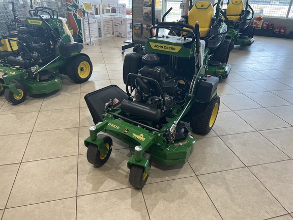 The John Deere Q810E has 19-hp (14.2-kW), a 36" 7-gauge fabricated deck and it mows up to 8 mph.