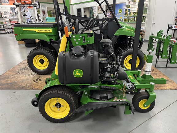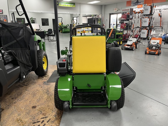 The John Deere Q810E has 19-hp (14.2-kW), a 36" 7-gauge fabricated deck and it mows up to 8 mph.