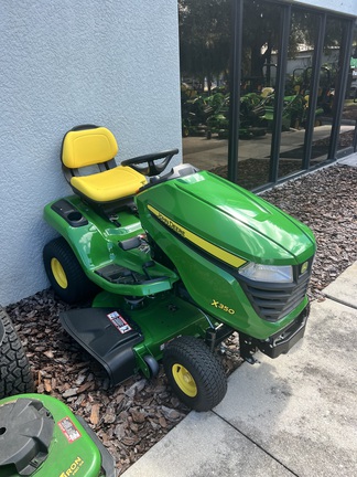 The John Deere X350 is a reliable lawn tractor designed for homeowners seeking superior performance and ease of use. Powered by a 21.5 hp V-twin engine, it provides smooth, efficient mowing across various terrains. The X350 features a 42-inch deck for precise cutting, hydrostatic transmission for easy speed control, and a comfortable operator station with ergonomic controls. Durable construction and easy maintenance make it ideal for residential lawns, gardens, and light property upkeep, delivering consistent results season after season.