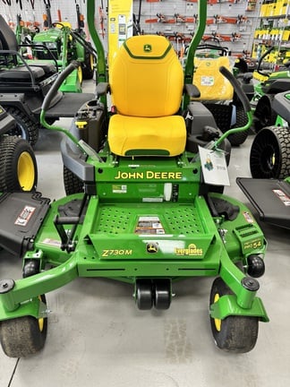 John Deere Z730M ZTrak zero-turn mower is a commercial-grade unit for larger properties and light fleet work. It’s powered by a high-performance V-twin FX-class gas engine with hydrostatic drive for fast, smooth control up to around 9 mph. The Z730M pairs with a 54- or 60-in. 7-Iron PRO or high-capacity mower deck for excellent cut quality, strong suction, and efficient clipping dispersal, with optional MulchControl for quick switching between discharge and mulching. A heavy welded frame, large rear tires, ROPS, adjustable high-back seat with armrests, and intuitive control layout keep the Z730M durable, comfortable, and ready for long mowing days.
