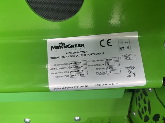 This 2025 Mean Green VQS60S220 60 is currently located in Orlando.