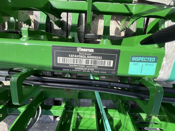 John Deere AV56G 72-in. root grapple is a heavy-duty, global carrier attachment designed for mid- to large-frame loaders needing serious land-clearing capability. The 72" rake width with closely spaced, curved tines lets you sift dirt while grabbing roots, logs, and brush, reducing haul weight and cleanup trips. Dual hydraulic cylinders provide strong clamping force on uneven loads, and the open-frame design improves visibility to the working edge. Quick-attach compatibility, guarded hydraulic lines, and a reinforced main frame make the AV56G ideal for storm cleanup, fence line clearing, and heavy debris work on farms, acreages, and job sites.