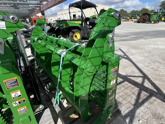 John Deere AV57G 84-in. root grapple is a heavy-duty hydraulic grapple built for larger loaders using a global-style carrier. Full-width 84" rake with closely spaced tines and tapered tips lets you clamp brush, roots, and debris without losing material, while the wide upper clamp improves stability on big loads. Quick-change hookup, dual hydraulic cylinders, and protected hose routing keep attachment changes and service fast. A welded base frame with integrated parking feet lets the grapple stand upright for storage and helps the heel rip out stubborn roots during land clearing, storm cleanup, fencerow work, and acreage cleanup.