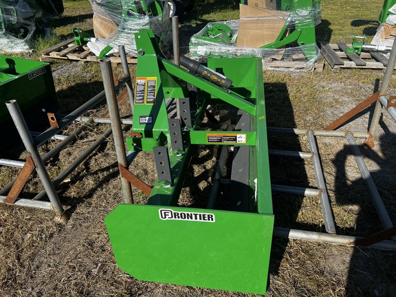 The Frontier BB5072 6' Standard Duty Box Blade is a versatile landscaping attachment designed for compact utility tractors. With a 72-inch working width, it features five replaceable and adjustable ripper shanks, allowing for effective soil penetration and leveling. The blade is reversible and made of durable steel for extended wear life. Its fixed tailgate provides extra durability, ensuring consistent performance in various soil conditions. The BB5072 is compatible with Category 1 3-point hitches and is iMatchâ„¢ quick-hitch compatible, facilitating easy attachment and detachment.