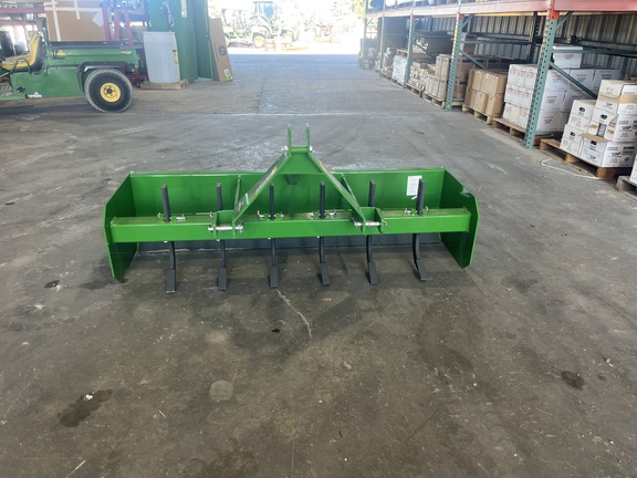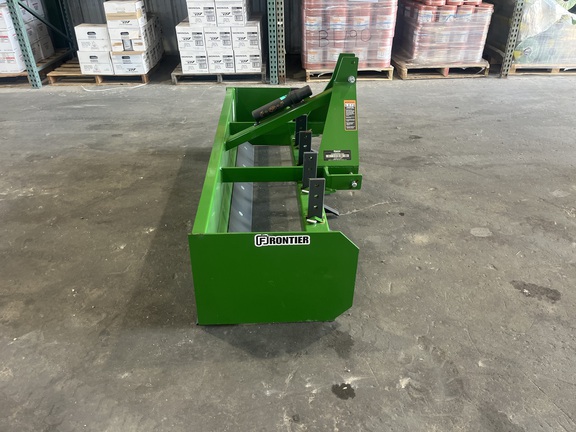 The Frontier BB5072 6' Standard Duty Box Blade is a versatile landscaping attachment designed for compact utility tractors. With a 72-inch working width, it features five replaceable and adjustable ripper shanks, allowing for effective soil penetration and leveling. The blade is reversible and made of durable steel for extended wear life. Its fixed tailgate provides extra durability, ensuring consistent performance in various soil conditions. The BB5072 is compatible with Category 1 3-point hitches and is iMatchâ„¢ quick-hitch compatible, facilitating easy attachment and detachment.