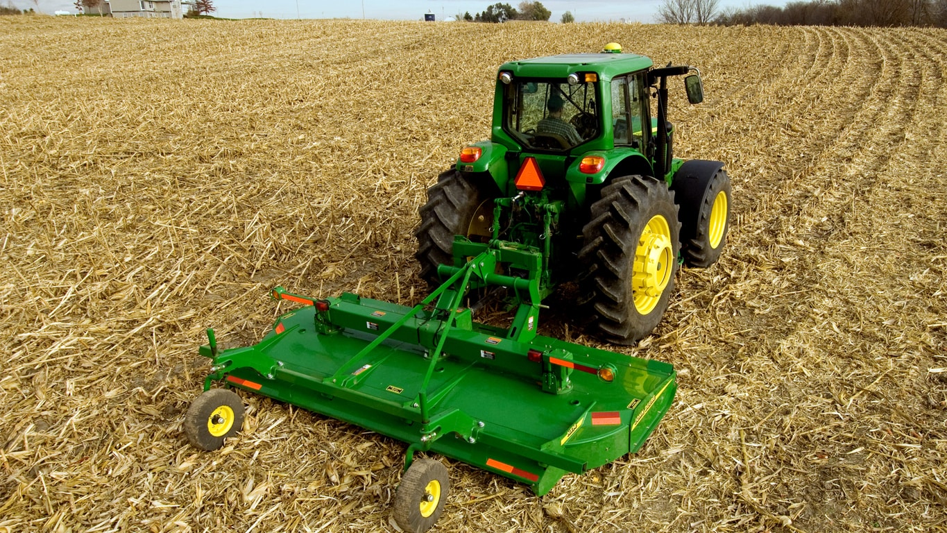 John Deere rotary cutters are available in three duty-level categories, three different spindle configurations, four hitch types, and three flex-wing sizes.