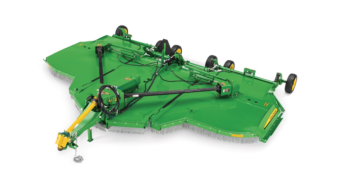 John Deere flex-wing rotary cutters lead the way with innovative design, superior durability, and proven performance. Valuable features are included such as a dome-shaped smooth deck, which prevent water and debris from accumulating on the top of the machine and makes it easy to clean up.