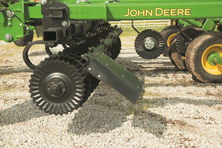 Exclusive to John Deere and designed specifically for the 2660VT, the Commander blade works across the entire gang angle range from 0 to 12 degrees. These low-draft, wavy straight blades on 18.41-cm (7.25-in.) spacing use a serrated edge to fracture and lift soil as well as cut and size residue.