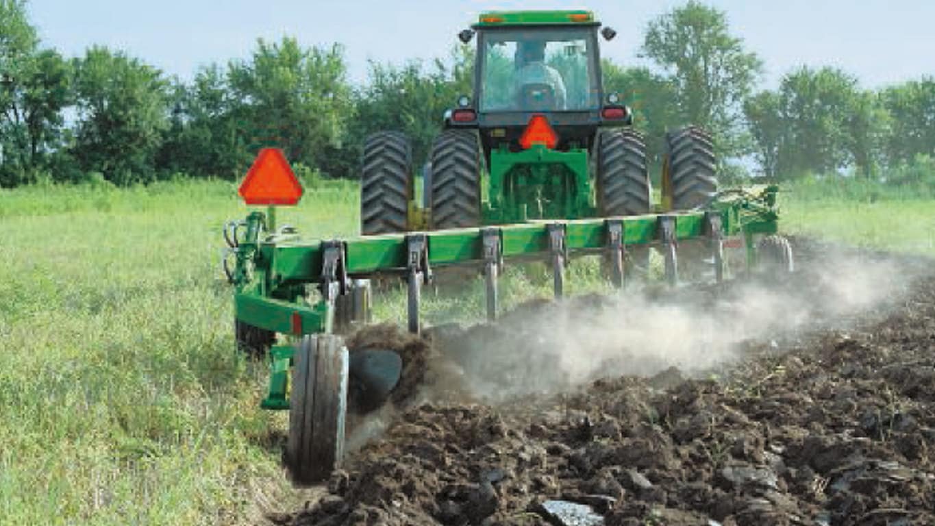 The operator can change the plow's width of cut to match the tractor horsepower and soil conditions.