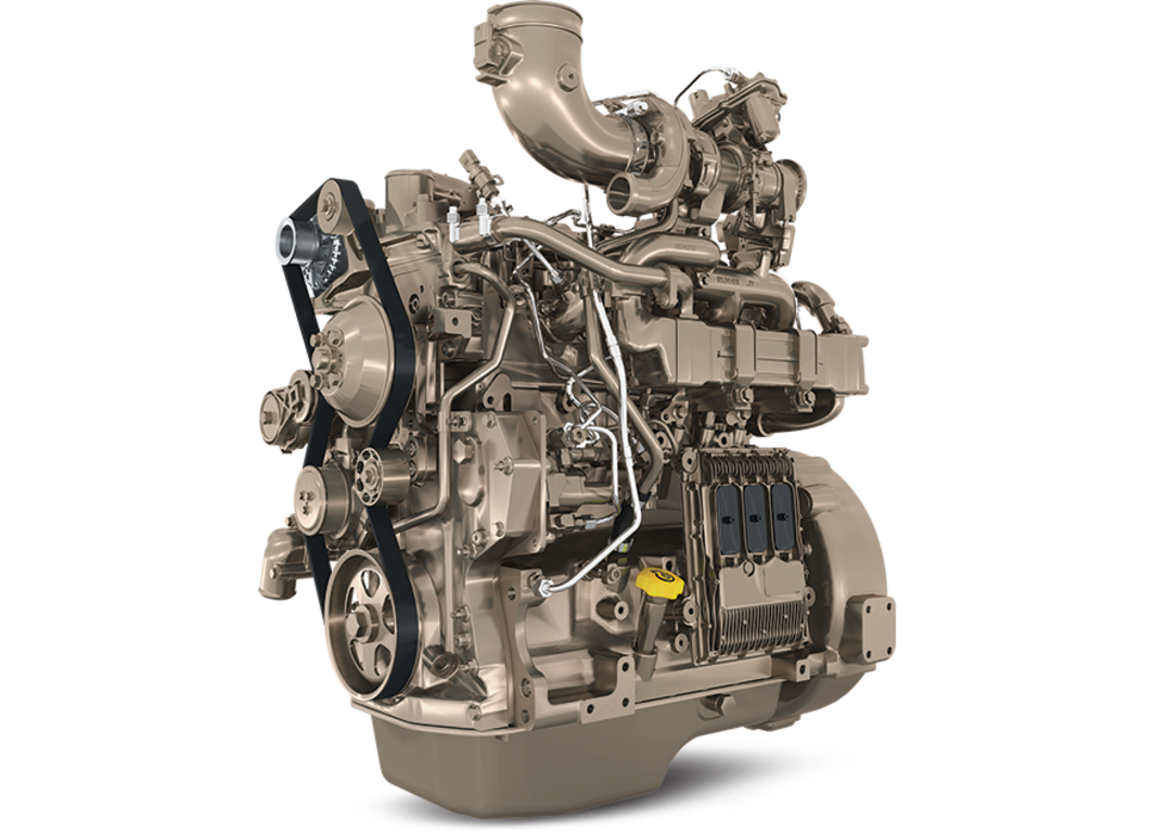 • PowerTech PWL 4.5L engines for Final Tier 4/Stage IV produce near-zero levels of particulate matter (PM) without a filter, thanks to an optimized combustion system and engine calibration. Remaining PM and other hydrocarbons are oxidized passively in a flow-through DOC without the need for regeneration.