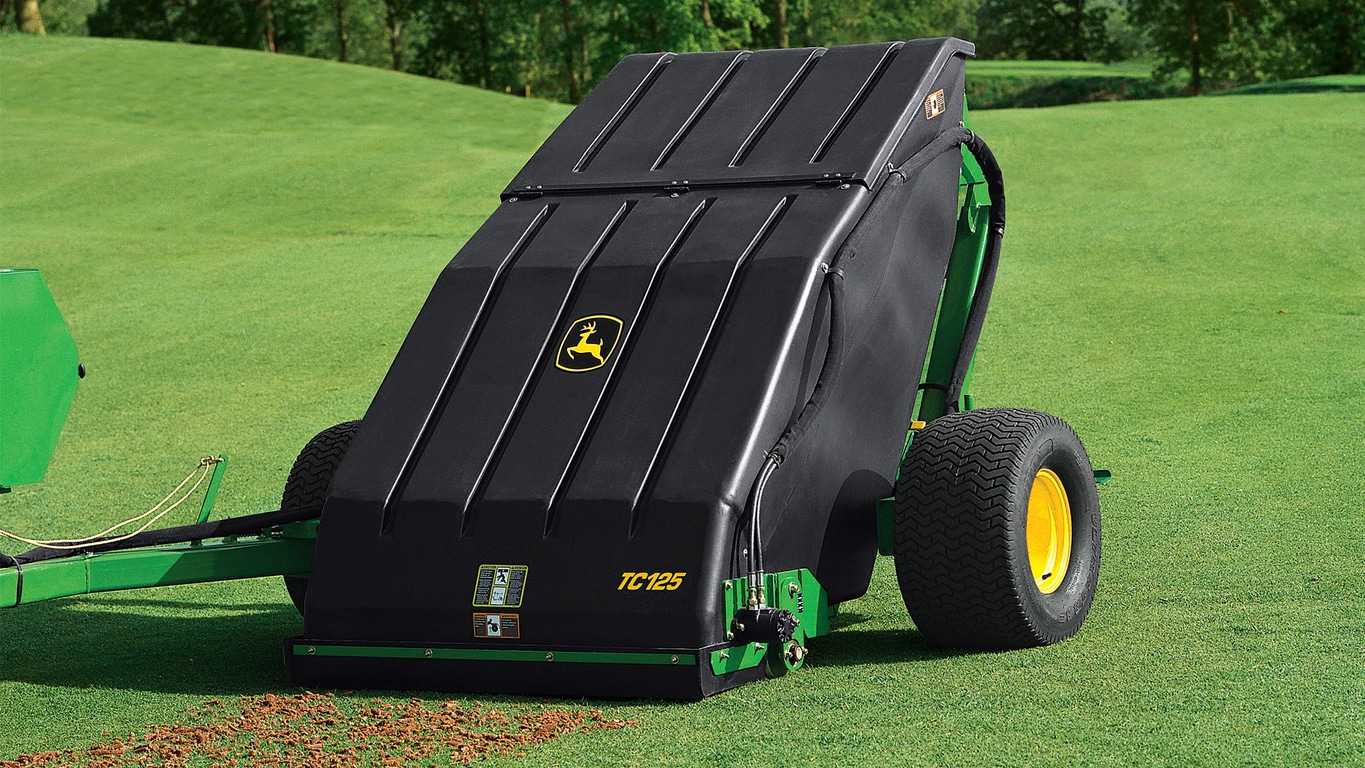 The TC125 has a dumping height of 49 in. (124.5 cm) and is equipped with a hydraulic lift cylinder allowing debris to be easily emptied into the cargo box of a heavy-duty utility vehicle.