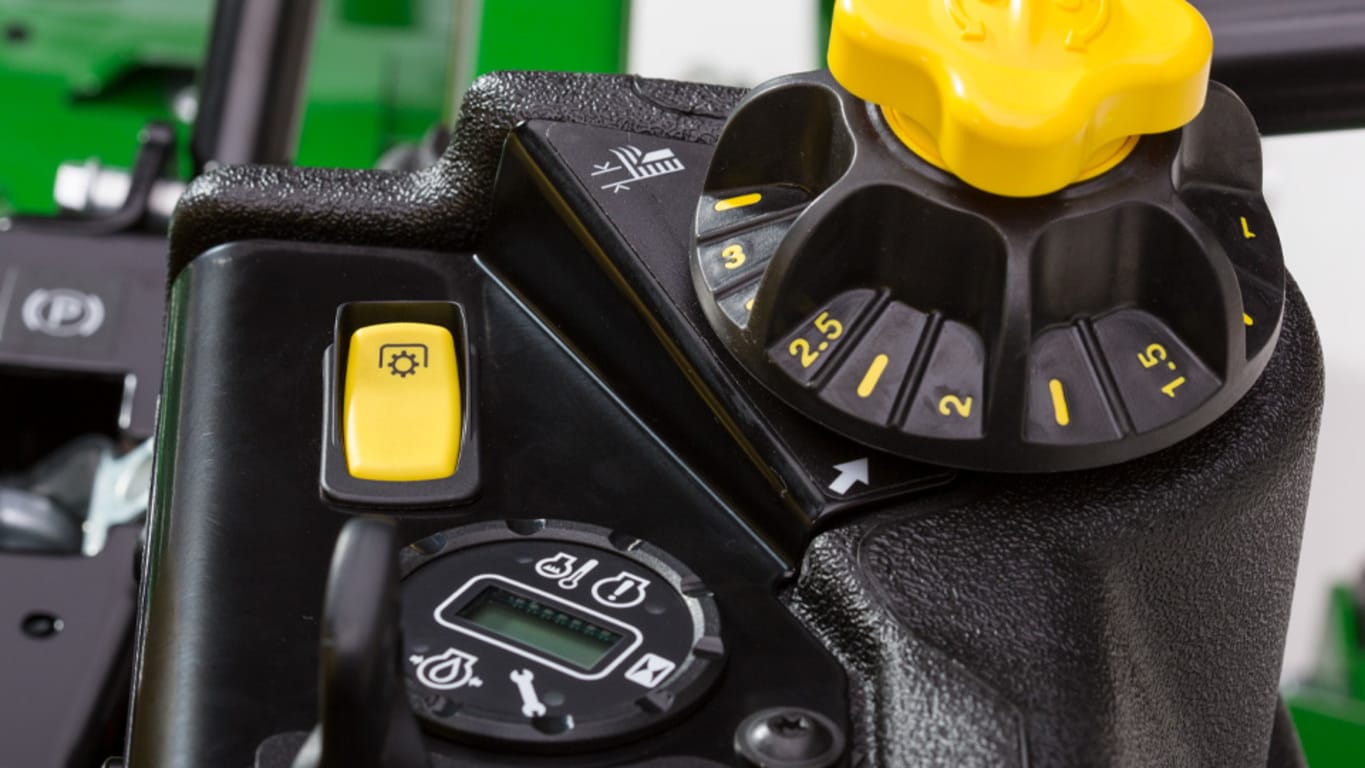 An easy-to-use cutting-height lift system allows the operator to adjust the mower deck height with no tools and minimal effort. The easy-to-grip knob allows operators to dial in the desired height of cut (HOC).