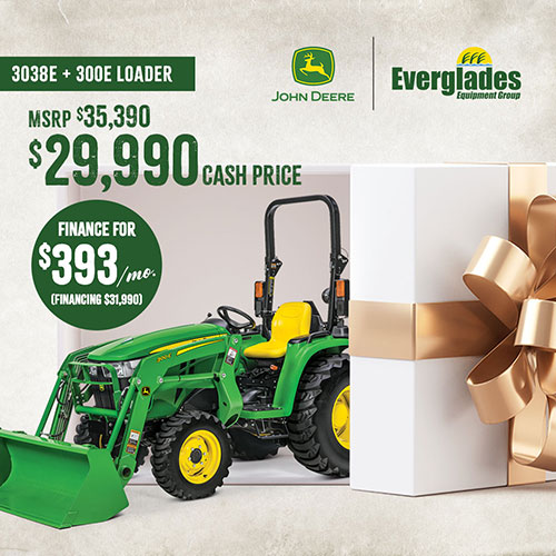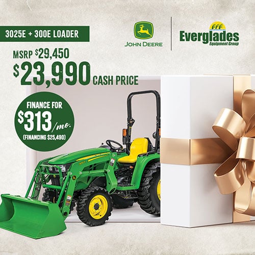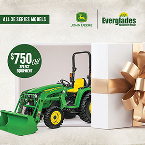 Black Friday just became the best time of the year to upgrade your equipment. Everglades Equipment Group is rolling out exclusive holiday savings, starting with special financing on the 3025E and 3038E, both paired with the 300E loader and priced to move fast. Every qualifying buyer gets an automatic $750 Black Friday discount on select John Deere models, and ten lucky customers will score an incredible $5,000 bonus on top. Eligible units include the full 3E Compact Tractor series, select XUV835/845/865/875 Utility Vehicles, the Z700 series ZTrak zero turns, and the X700 series riding lawn mowers. This Black Friday lineup brings real savings, real value, and real reasons to take advantage while inventory lasts.
