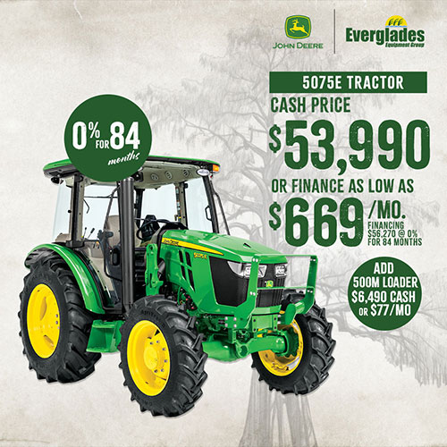 | Tractor Includes | 5075E Utility Tractor ADD 500M Loader for only $6,490 CASH or another $77/month |