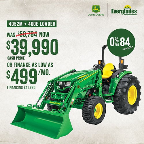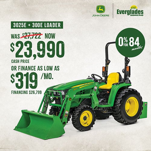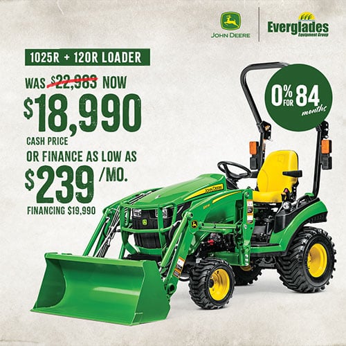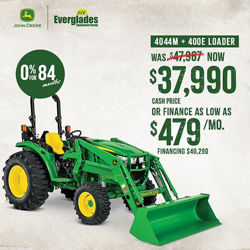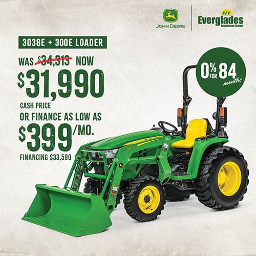 Take advantage of 0% financing for 84 months on select John Deere compact and utility tractors during our Rooted in Savings event! Whether you're a first-time tractor buyer or expanding your fleet, our budget-friendly financing through John Deere Financial helps you get the equipment you need without breaking the bank. Every package includes a factory-installed loader so you're ready to work from day one. Don't miss this limited-time opportunity—these prices and rates won't last forever!