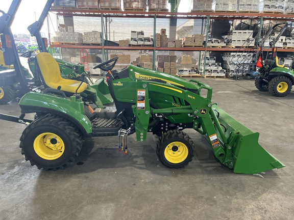 The John Deere 1023E Compact Utility Tractor equipped with the 120R front loader delivers powerful performance in a compact, easy-to-use package. Featuring a 21.5-hp diesel engine, hydrostatic transmission, and quick-attach 120R loader, it’s perfect for mowing, loading, and light landscaping. The 1023E offers exceptional maneuverability, comfort, and reliability—ideal for homeowners, small farms, and property maintenance. Get more done with the versatile John Deere 1023E and 120R loader combo.