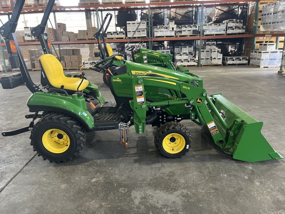 The John Deere 1023E Compact Utility Tractor equipped with the 120R front loader delivers powerful performance in a compact, easy-to-use package. Featuring a 21.5-hp diesel engine, hydrostatic transmission, and quick-attach 120R loader, it’s perfect for mowing, loading, and light landscaping. The 1023E offers exceptional maneuverability, comfort, and reliability—ideal for homeowners, small farms, and property maintenance. Get more done with the versatile John Deere 1023E and 120R loader combo.