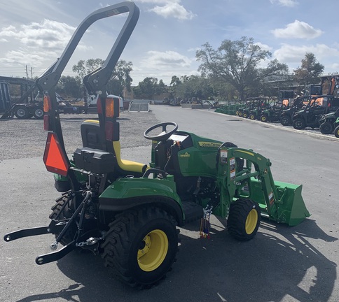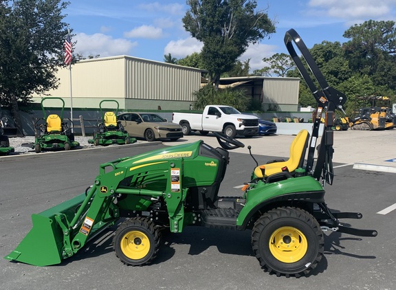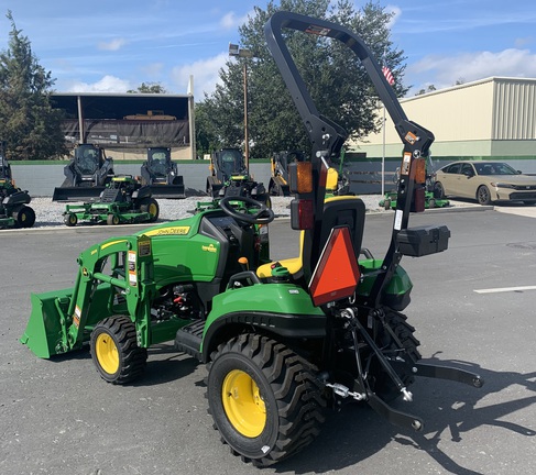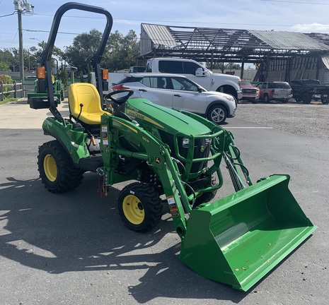 The John Deere 1023E Compact Utility Tractor equipped with the 120R front loader delivers powerful performance in a compact, easy-to-use package. Featuring a 21.5-hp diesel engine, hydrostatic transmission, and quick-attach 120R loader, it’s perfect for mowing, loading, and light landscaping. The 1023E offers exceptional maneuverability, comfort, and reliability—ideal for homeowners, small farms, and property maintenance. Get more done with the versatile John Deere 1023E and 120R loader combo.