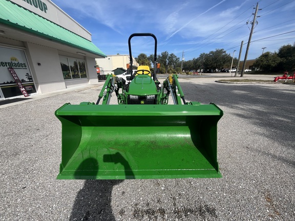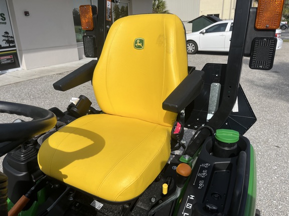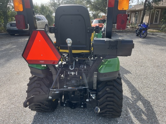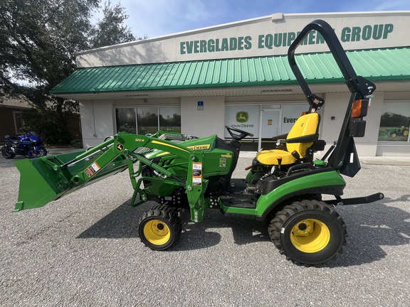 The John Deere 1025R is a sub-compact utility tractor designed for homeowners and small property owners looking for versatility and ease of use. Powered by a 23.9 HP, 3-cylinder diesel engine, it delivers reliable performance for light-duty tasks such as mowing, landscaping, and material handling. The 1025R features a hydrostatic transmission for smooth operation and a 1,357 lb rear hitch lift capacity, allowing it to handle a variety of attachments. Its compact size, ergonomic operator station, and standard four-wheel drive make it ideal for maneuvering in tight spaces while maintaining productivity.