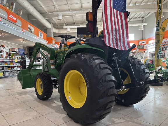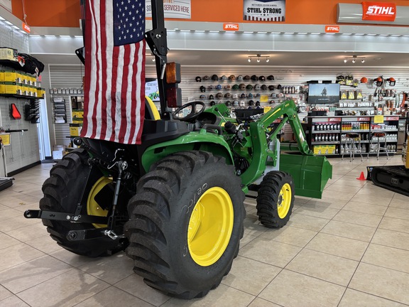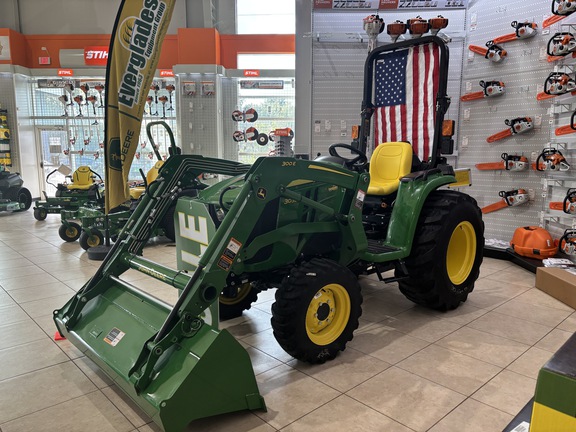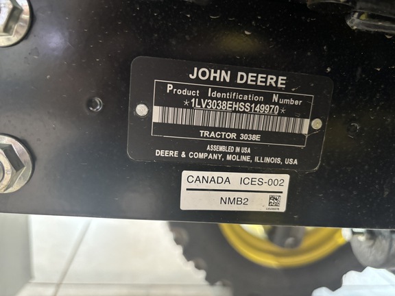The John Deere 3038E is a 36.7-horsepower compact utility tractor designed for versatility and performance. It features a 1.57L 3-cylinder Yanmar diesel engine, hydrostatic transmission with Twin Touchâ„¢ pedals, and standard 4WD for enhanced traction. The tractor offers a Category 1 3-point hitch with a lift capacity of 1,356 lbs, making it compatible with a wide range of implements. Paired with the 300E Loader, this combination provides an 845-lb lift capacity, ideal for material handling tasks.