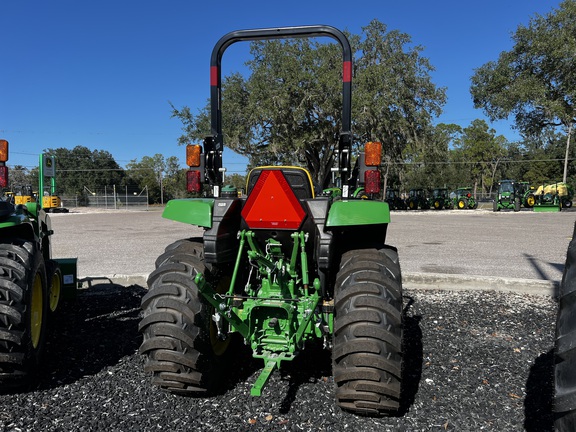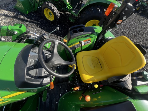 The John Deere 3043D is a compact utility tractor featuring a 41.6 hp Yanmar turbocharged diesel engine. Designed for versatility, it is ideal for agricultural, landscaping, and small property tasks. The 3043D offers a 36.3 hp PTO power and a 8F/8R synchromesh shuttle shift transmission, ensuring smooth operation. With a 4WD system, it provides excellent traction on various terrains. Its Category 1 3-point hitch has a 1,670 lbs lift capacity, making it compatible with a wide range of implements.