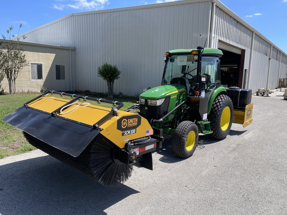 John Deere 4052R Cab with Smith Challenger SCM100 7' Side Shift Sweeper Hydraulic Broom & SCM78 Flex Blade. This is one configuration of a sweeper broom tractor used in road paving and other broom essential applications. Please contact us for more information!