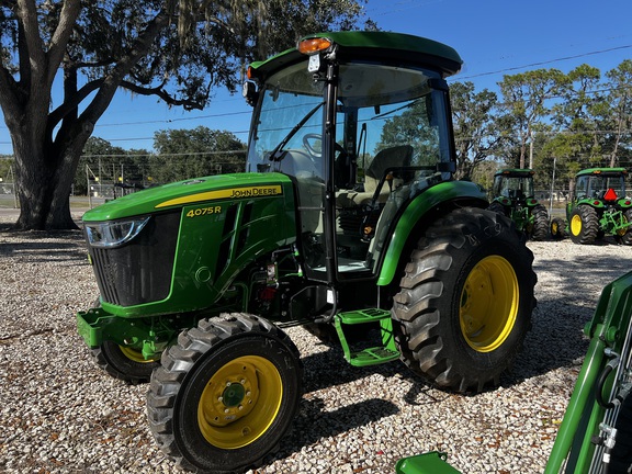 John Deere 4075R compact utility tractor is the high-horsepower flagship of the 4R Series, delivering about 75 engine hp and heavy Category 1/2 3-point capacity in a compact frame. A turbocharged diesel engine pairs with eHydroâ„¢ transmission and standard 4WD for confident loader work and ground engagement. Premium operator station with suspension seat, ergonomic joystick, and integrated SCVs gives precise hydraulic control. Ideal for bigger acreage, small farms, and commercial properties needing maximum power in a manageable size.