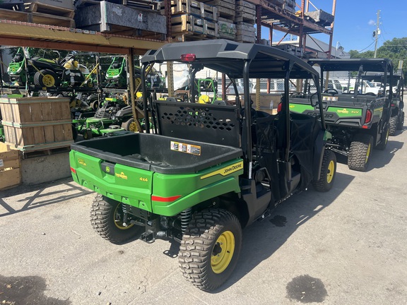 The John Deere XUV 560E 4 seater delivers dependable utility in a compact package, powered by a 570 cc air-cooled V-twin gas engine producing 16 hp. It uses a continuously variable transmission with park position and dash-switch selectable 4WD plus locking rear differential for optimized acceleration, towing, and hill-climbing.