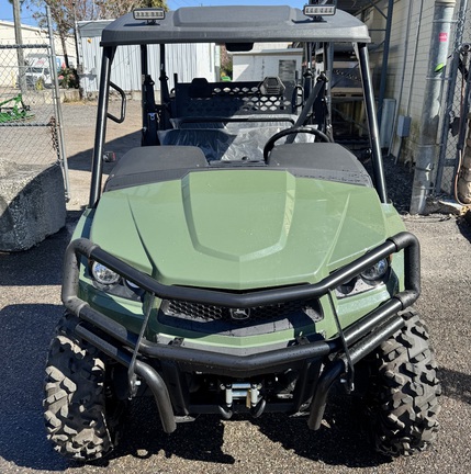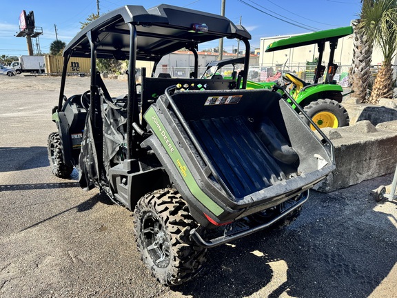 The John Deere Gator XUV590M S4 Gas MY25 delivers confident performance with a 586cc EFI twin engine, reaching up to 48 mph and supported by a smooth CVT. Its fully independent dual A-arm suspension with 8 in. travel and power steering provide excellent handling on rough terrain. Seating for four, a convertible rear cargo area, 500-lb cargo box capacity, and 1,500-lb towing capability make it versatile for work or recreation. Built with a durable steel frame and full skid protection, it’s a powerful, reliable mid-size crossover UTV.