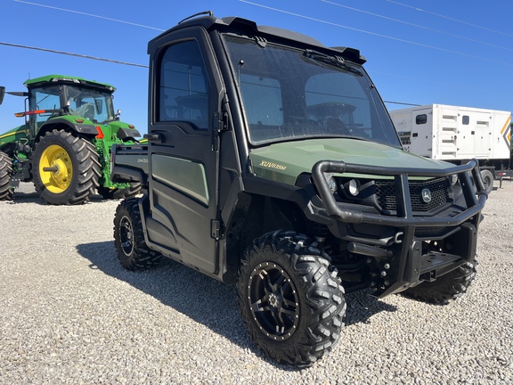 John Deere XUV835M Gator with HVAC cab is a full-size 4x4 utility vehicle built for all-weather comfort and hard work. It’s powered by a fuel-injected 54-hp class 3-cylinder gas engine with on-demand true 4WD and independent suspension for a smooth ride over rough ground. The factory cab adds heat, A/C, sealing, and opening glass for year-round use, plus tilt steering and high-back seats for long days. Power steering, automotive-style controls, and hydraulic disk brakes boost control, while the steel cargo box, 2-in. receiver hitch, and strong towing and payload capacities make the 835M HVAC a serious work-focused Gator.